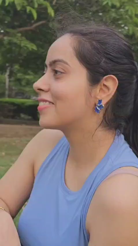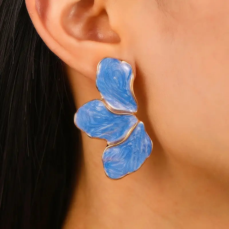 Soft, airy, and effortlessly graceful, they bring a dreamy twist to your everyday style. Inspired by maple leaves and watercolor petals, these dangle earrings add a refreshing pop of blue with their fluid, irregular petal design outlined in gold.