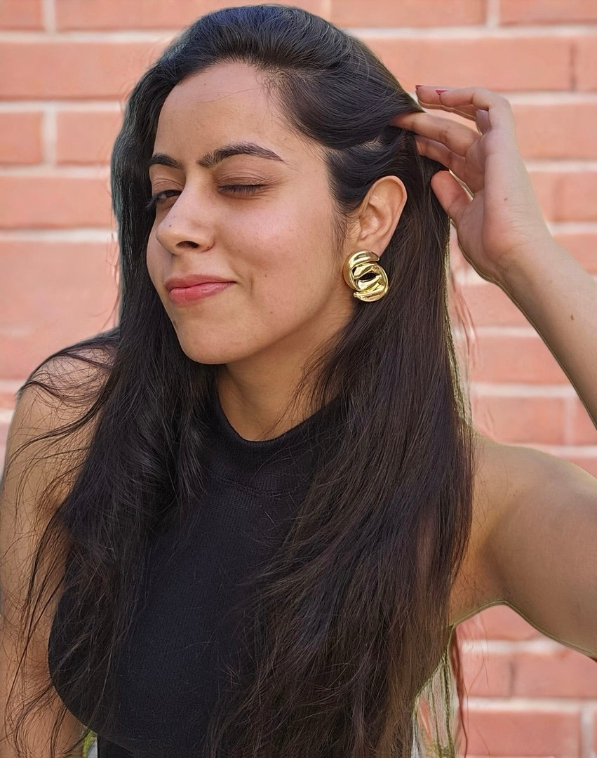 Lightweight yet impactful, these modern earrings for women add an elegant twist to both daily wear and special occasions. Whether you’re styling a sleek work outfit or making a statement at a party, these gold earrings are your go-to for effortless glam.