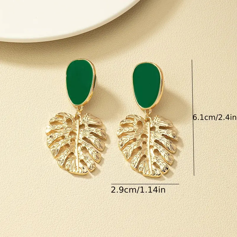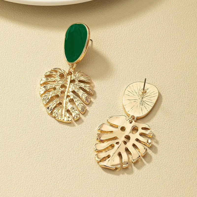 These 14K gold-plated green drop earrings bring effortless style to your wardrobe. With a sculpted monstera leaf and rich green enamel top, they are rafted on stainless steel, they’re anti tarnish, lightweight, and vacation ready too for every poolside plan or seaside stroll. Your go-to for effortless glam