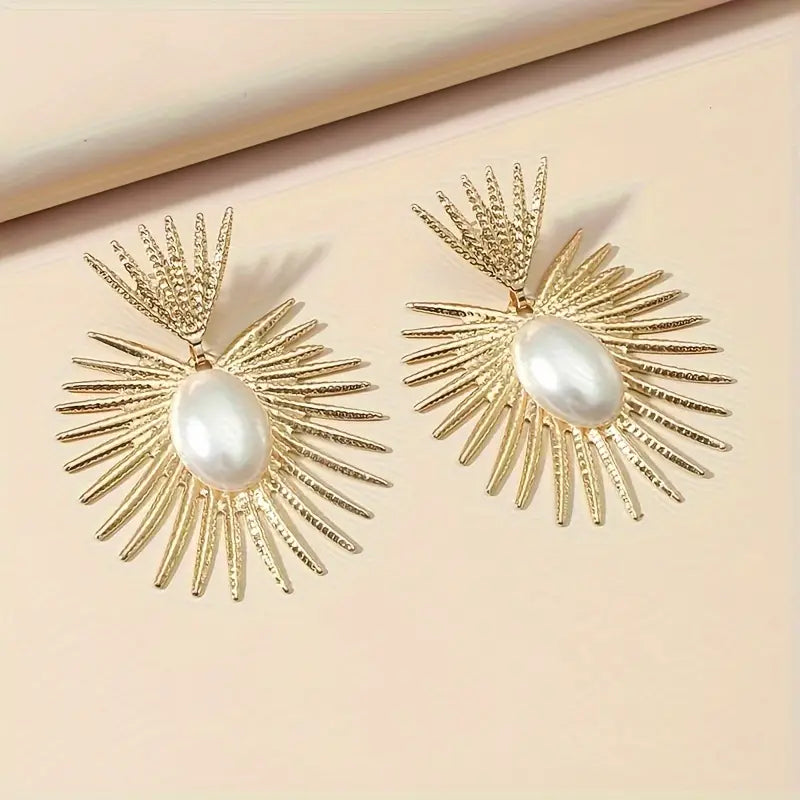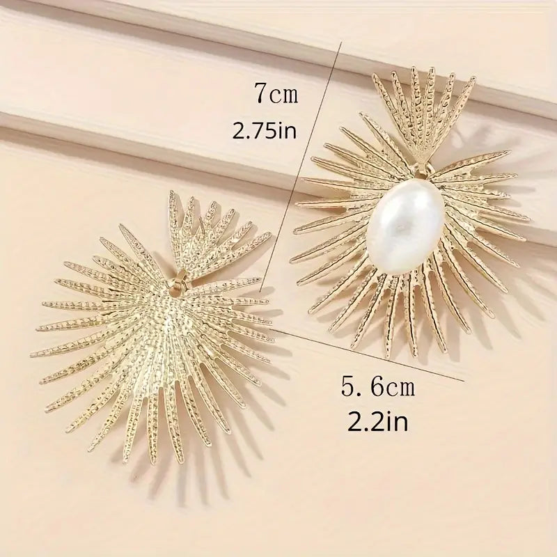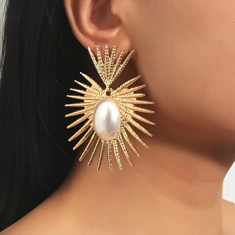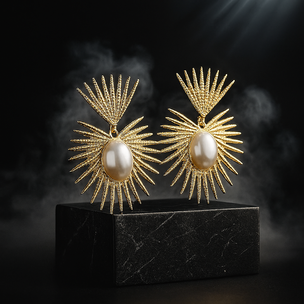 Turn every outfit into a moment with our Pearl Earrings - Sunburst. These statement earrings feature a striking sunburst design with a luminous pearl centre, combining elegance and boldness in perfect harmony. Whether you’re dressing up for a wedding, styling your daily wear earrings, or adding flair to a sangeet or pooja look, these beauties are made to shine.